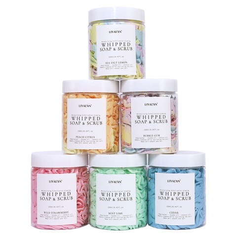 Jabón exfoliante corporal de manteca de karité personalizado, crema batida de sandía, fresa, latte, baño, afeitado, cuidado personal, producto de belleza